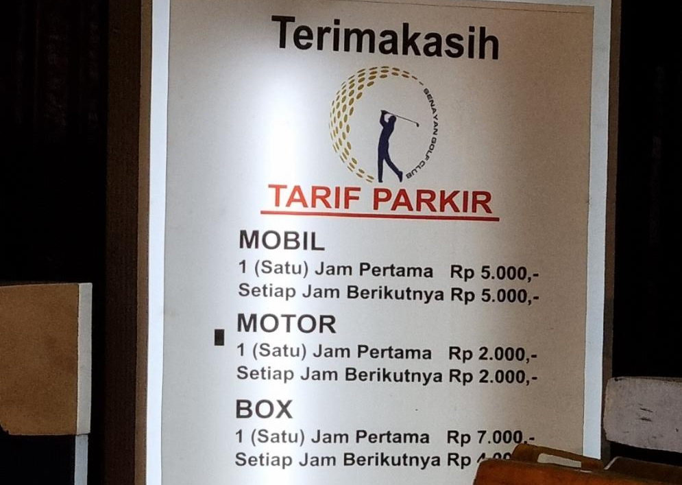 주차료 1시간에 5.000루피아네요. 저는 빨리 도착해서 저녁을 간단히 먹고 쳤는데 35.000루피아가 나왔습니다. 유료에 생각보다 금액이 크네요.