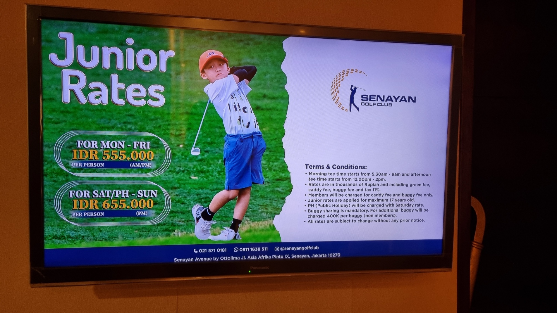6. 주니어 이용료(17세 이하, 주중 : 555.000루피아, 주말 : 655.000루피아)